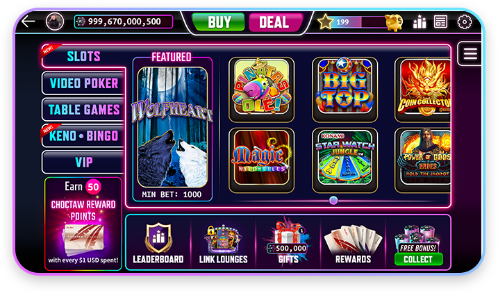 Test your luck spinning famous Vegas slots from IGT™, Ainsworth™, Konami™, Everi™, Aruze™ and more! A royal FLUSH awaits your fingers with Video poker classics and modern twists like the famous Multi-Rise Video Poker™ ! Enjoy your FAVORITE Free-to-play CASINO with FREE and EXCITING Choctaw slots! Winning never felt so good!